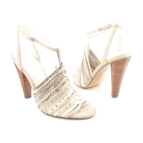 Catwalk with the best in the alluring Rene dress sandals from Calvin Klein. Alternating snake-embossed leather/suede or metallic leather upper in a dress strappy sandal style with a round open toe. Multiple thin straps cover vamp, single loop adjustable ankle strap.
